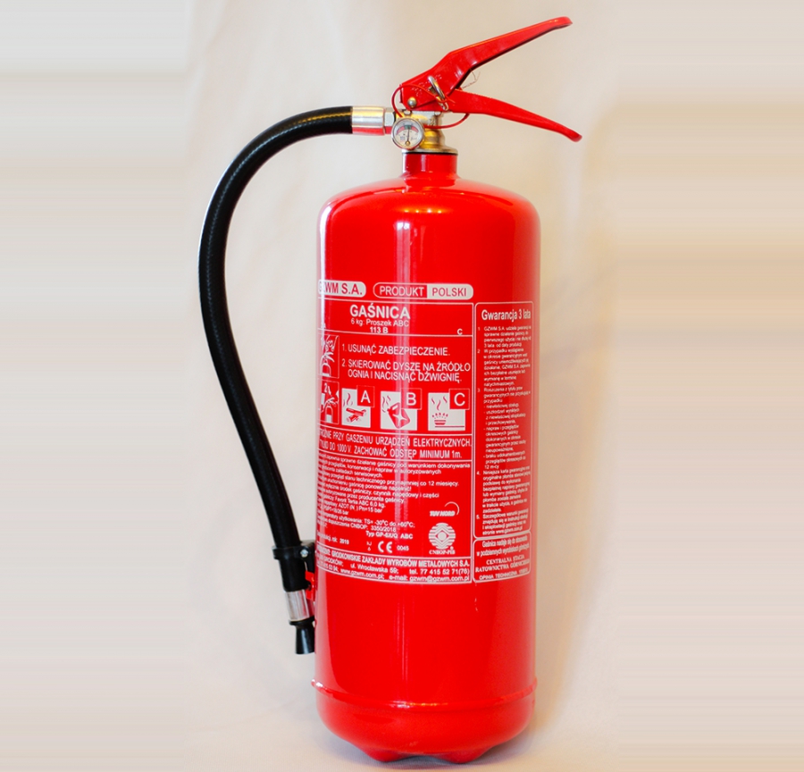 Standardowa gaśnica proszkowa 6kg proszku gaśniczego. Przeznaczona do gaszenia ognia w zarodku. Stosowana w budynkach, obiektach budowlanych, instytucjach, szkołach, garażach, hotelach, biurach, magazynach, hurtowniach, w przemyśle chemicznym, halach przemysłowych, warsztatach. W samochodach ciężarowych, autobusach, itp. estetycznie wykonana.